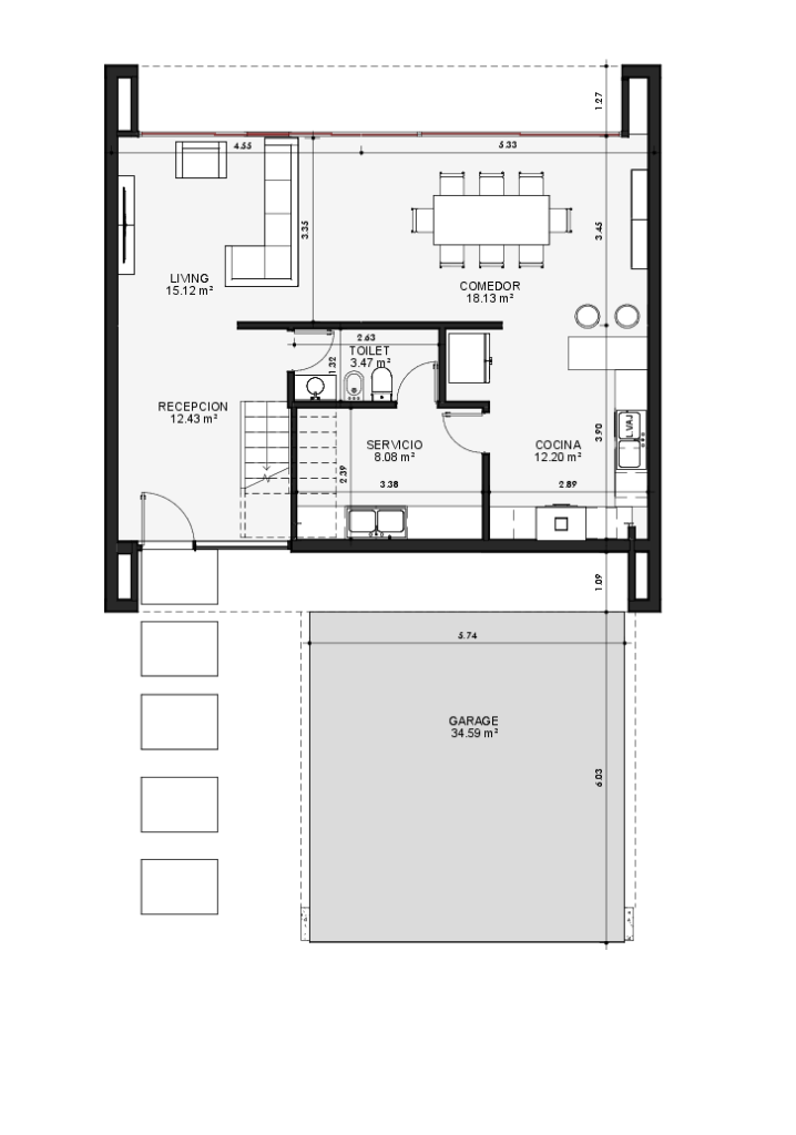 Distribución funcional en 2 plantas, con sectores claramente diferenciados: dormitorios la planta alta , y una zona social amplia y luminosa en el centro del hogar.