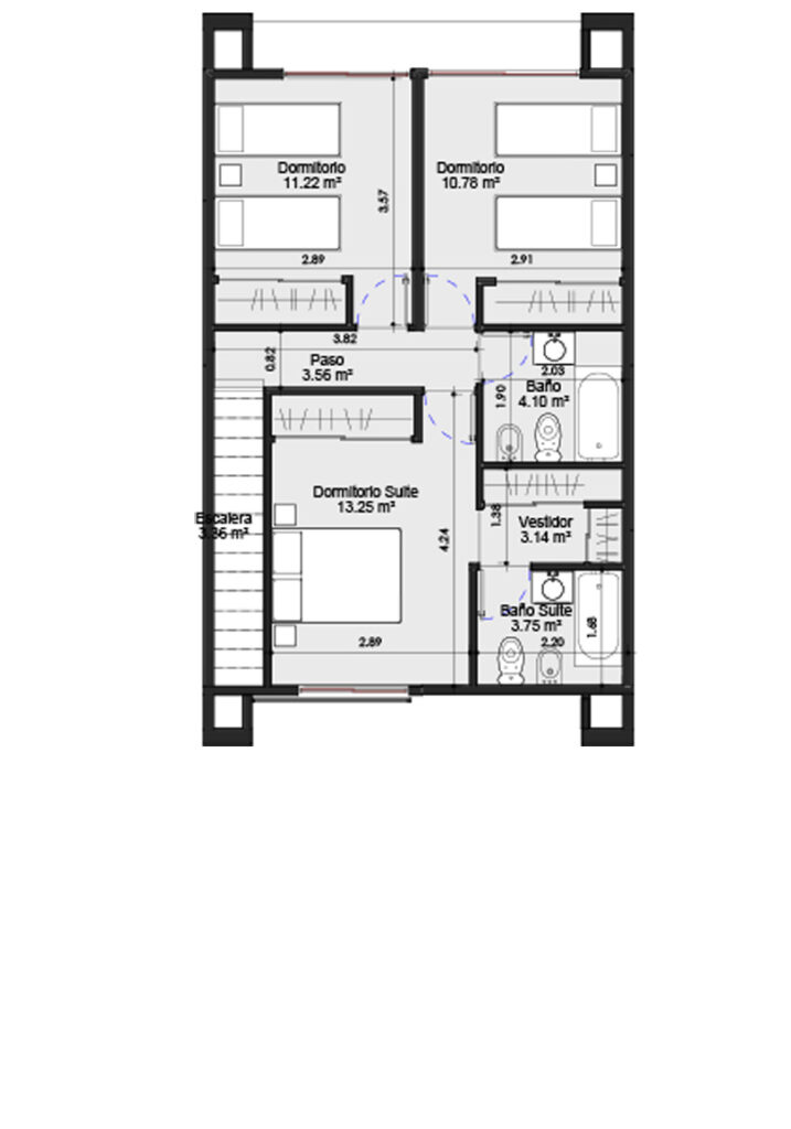 Distribución funcional en 2 plantas, con sectores claramente diferenciados: dormitorios la planta alta , y una zona social amplia y luminosa en el centro del hogar.