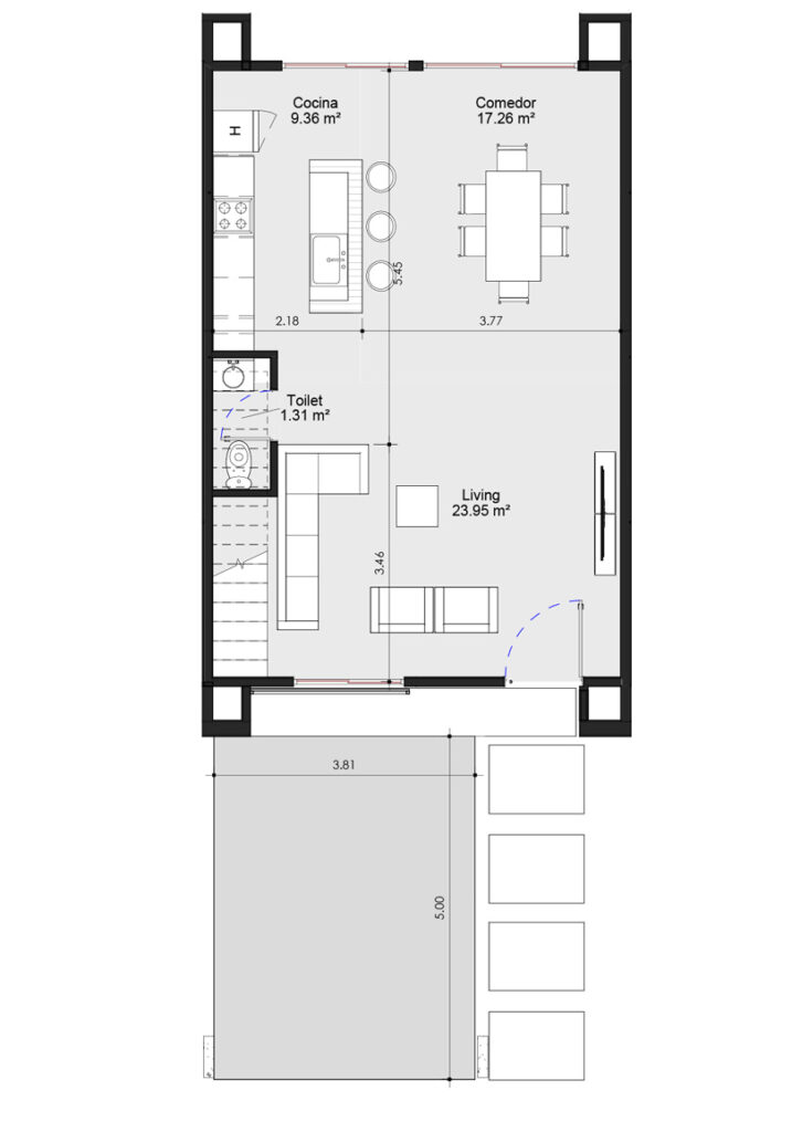 Terraza amplia y funcional, concebida como una extensión natural del espacio habitable.