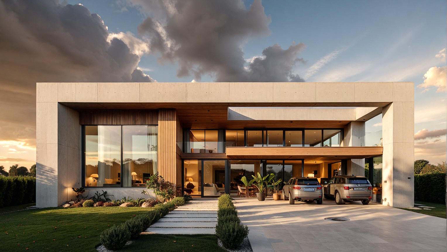 De líneas puras y proporciones horizontales, la casa renuncia a cualquier adorno superfluo para abrazar la esencia del minimalismo: formas simples, materiales nobles y una estética serena y atemporal.